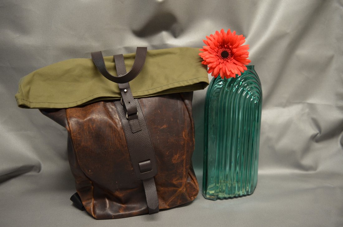 ZAINO PELLAME VEGETALE RIPORTI IN CANVAS