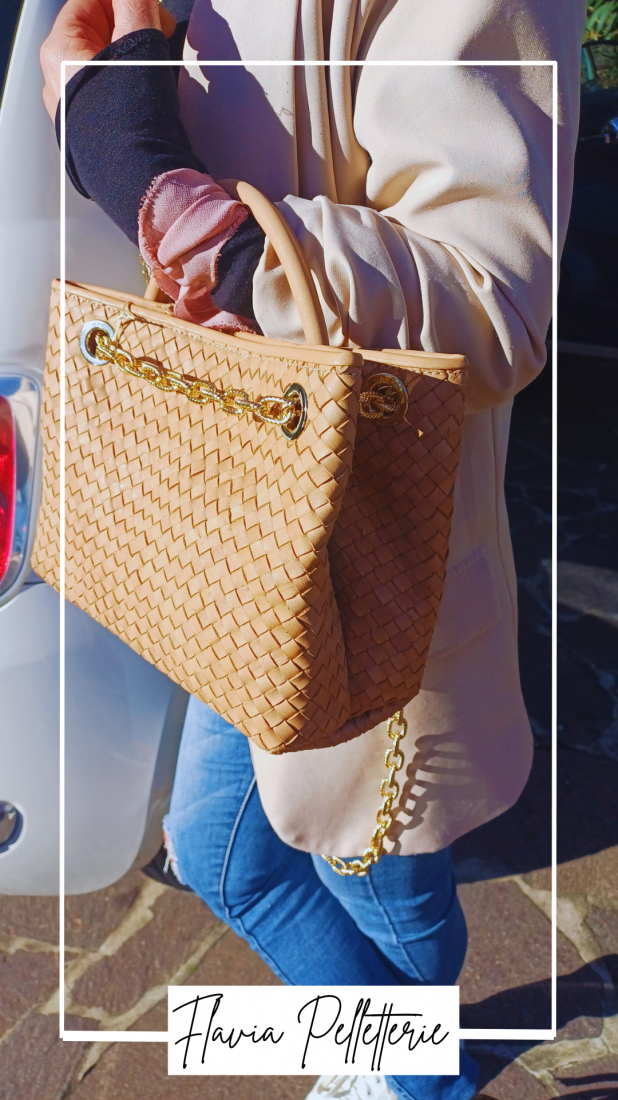 Realizzata in pregiata pelle intrecciata, questa borsa unisce la cura artigianale dei dettagli a una versatilità contemporanea. Il manico in pelle offre un’eleganza classica, mentre la tracolla lunga ti accompagna con comfort in ogni momento della giornata.