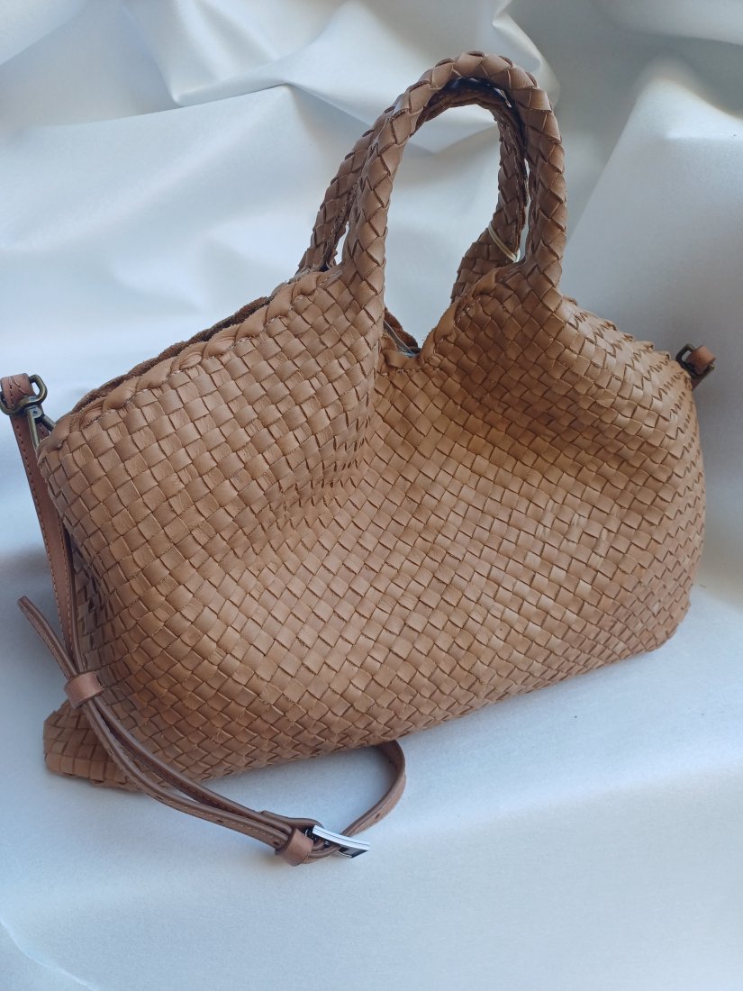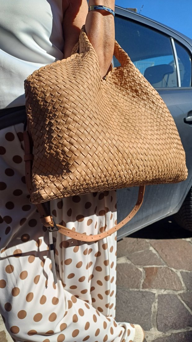 Con il suo intreccio in pelle, il manico strutturato e la tracolla lunga, questa borsa è pensata per chi ama la bellezza del dettaglio e la libertà di scegliere. Iconica, versatile, naturalmente tua.