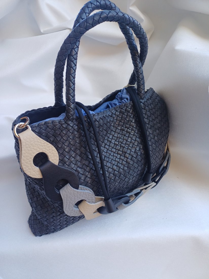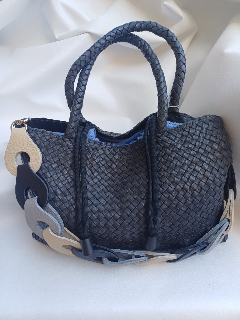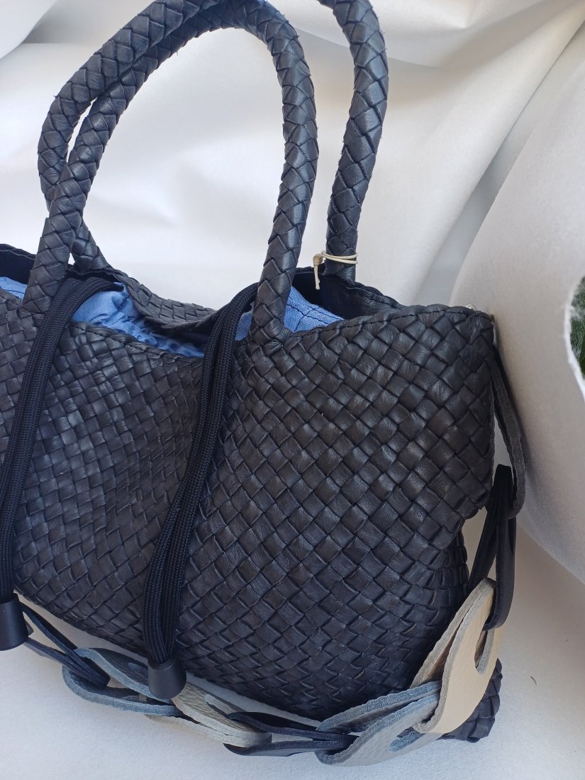 La pelle intrecciata racconta una storia di savoir-faire e stile, mentre il design con manico e tracolla ti regala tutte le opzioni che desideri. Una compagna fidata, elegante e pronta a tutto.